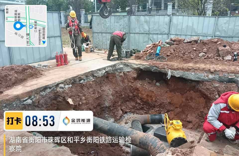为此,衡阳市天然气公司科学谋划、周密部署,组建专业技术攻坚团队,反复勘查现场、优化方案,制定了详尽的安全与应急预案。作业期间,施工人员严格遵循规程,在狭小空间内精准完成开挖、焊接、安装开孔设备、带压开孔、截流接驳、密封检测等一系列高精度操作。现场多岗位协同,实时监测压力与浓度,应急力量全程待命,确保了作业安全、精准、高效推进。